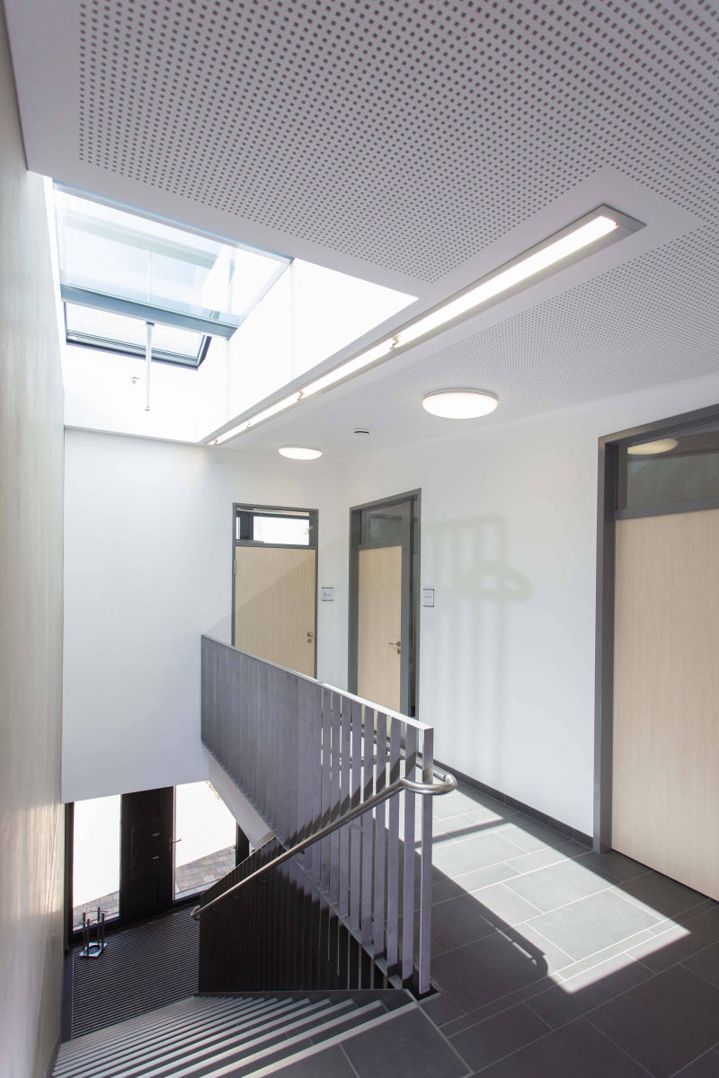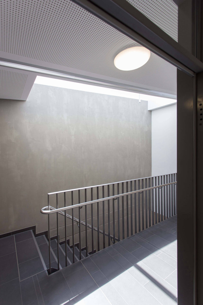 Im Erdgeschoss befinden sich Büros, Personalräume, ein barrierefreies WC, sowie flexible Besprechungsräume, im Obergeschoss weitere Büros, sowie Sanitäranlagen und eine Teeküche.