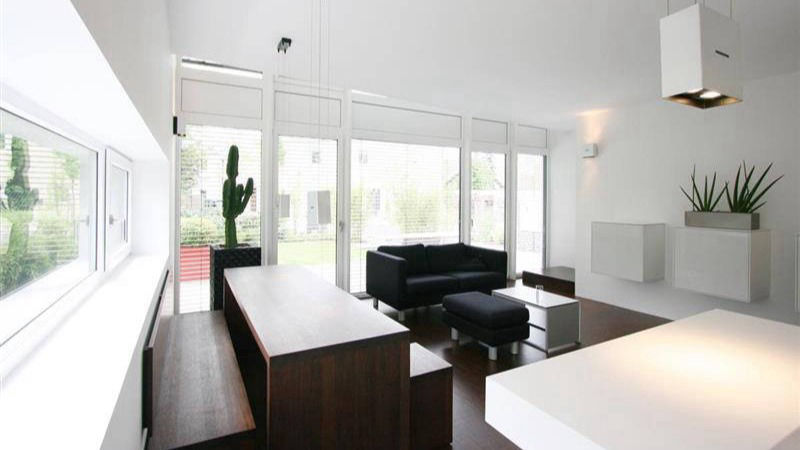 Der Bauherr hatte schon einige Häuser gebaut und wünschte sich schnell einen einfachen Kubus auf einem kleinen Grundstück. Nach kurzer intensiver Planungsphase wurde das Haus mit Carport nach weniger als ein Jahr bezogen.