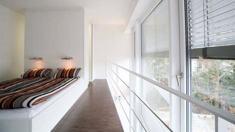 Im Erdgeschoss befindet sich der große Wohnbereich mit kleiner Herrenküche, im Obergeschoss der Schlafbereich mit begehbaren Kleiderschrank, Bad und Sauna, im Untergeschoss ein Gästebereich und Technikraum.