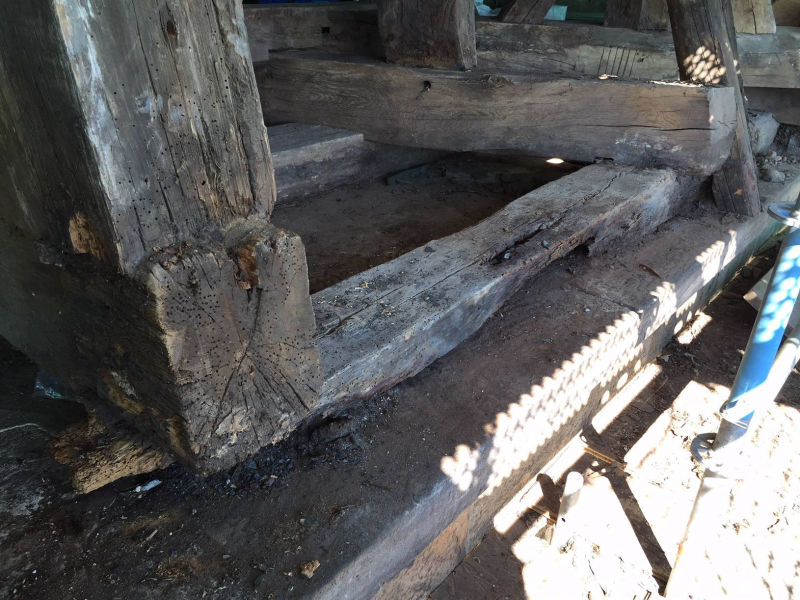 Dabei wurde auch festgestellt, dass Teile der Dachkonstruktion morsch waren und dringend saniert werden mussten. Teile der Auflagehölzer auf dem