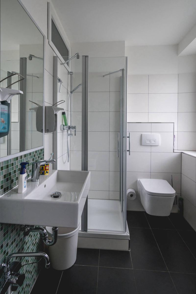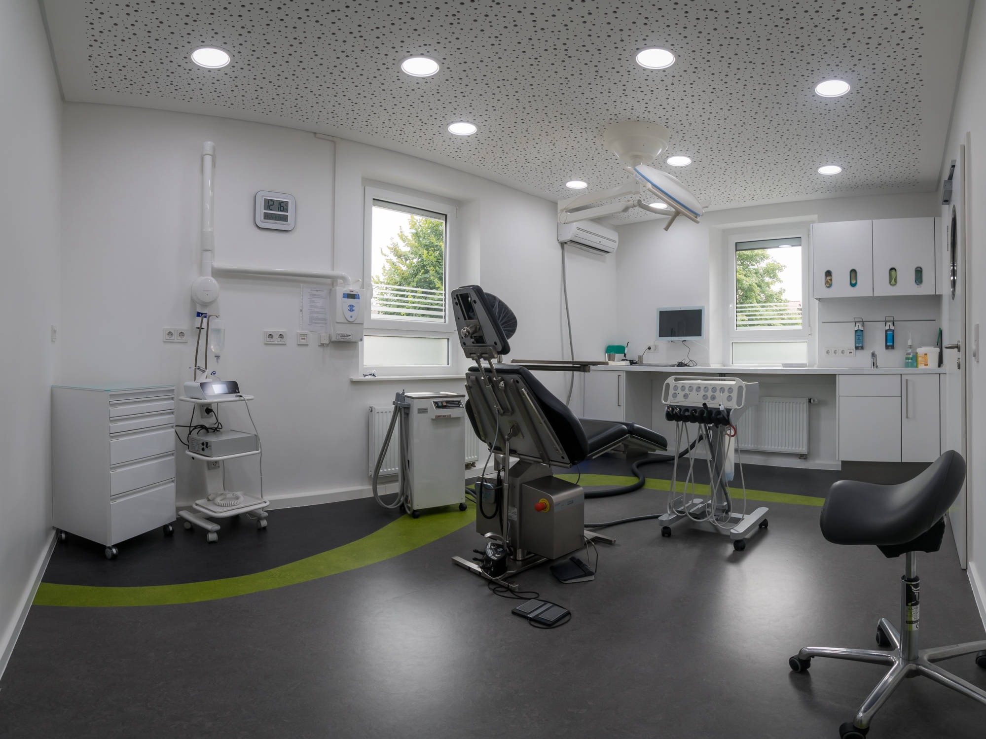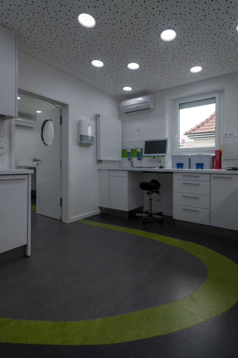 Dieser erweiterte das Leistungsspektrum der Praxis und baute dafür die ehemalige Untermieterwohnung im Obergeschoss in eine Kieferchirurgie mit zwei OP-Räumen, Labor, Chefbüro, Besprechungs- und Mitarbeiterraum um. Der dafür nötige starke Eingriff in den Bestand bewirkte eine sehr intensive Zusammenarbeit mit den Bauherren, die sich zuletzt in eine Freundschaft wandelte.