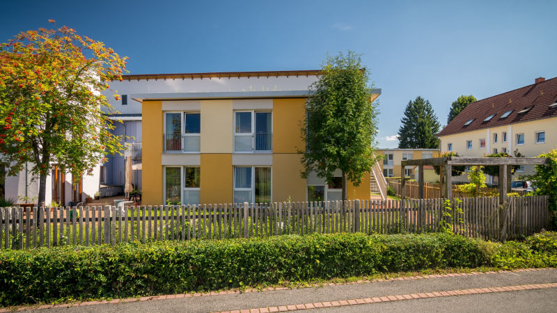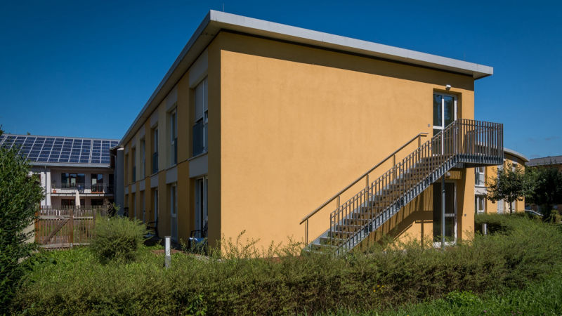 Das vom ghsw vormals geplante Seniorenzentrum sollte an an vier Stellen um weitere Wohngruppen auf je zwei Geschossen erweitert werden. An die ursprünglichen Pultdächer der Hauptgebäude wurden für den Bedarf weiterer Bewohner drei zweigeschossige Flachdachkörper mit Gründächern angebaut. Zudem wurde die Küche saniert, der Gemeinschaftsraum erweitert und die Außenanlagen gestaltet. Das Architekturbüro ghsw Hof plante die Erweiterungen, wir führten die Bauleitung durch. Die geplanten Kosten, sowie der enge Bauzeitenplan mit den vier Anbauten im laufenden Betrieb konnte störungsfrei eingehalten werden.