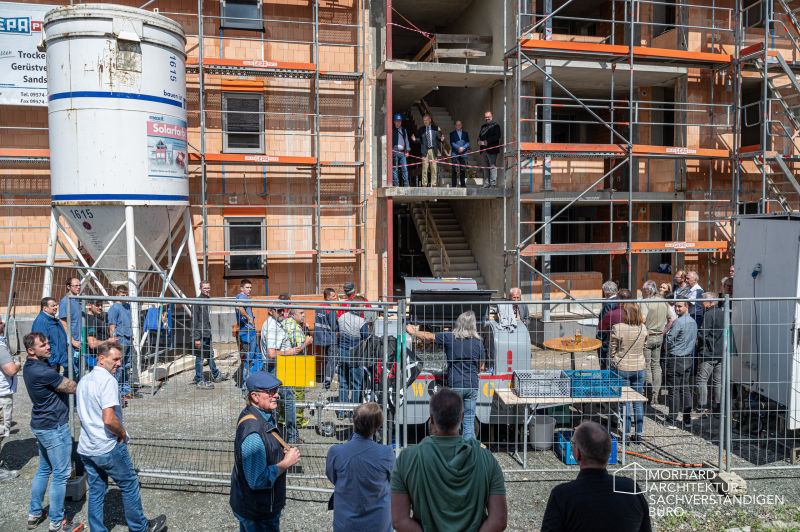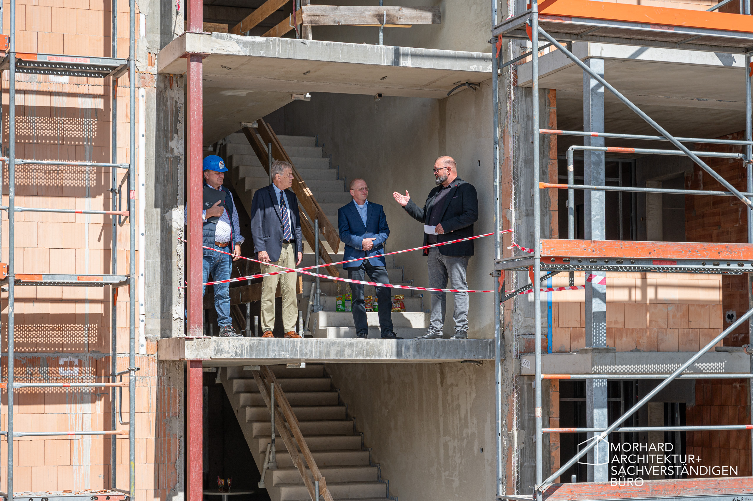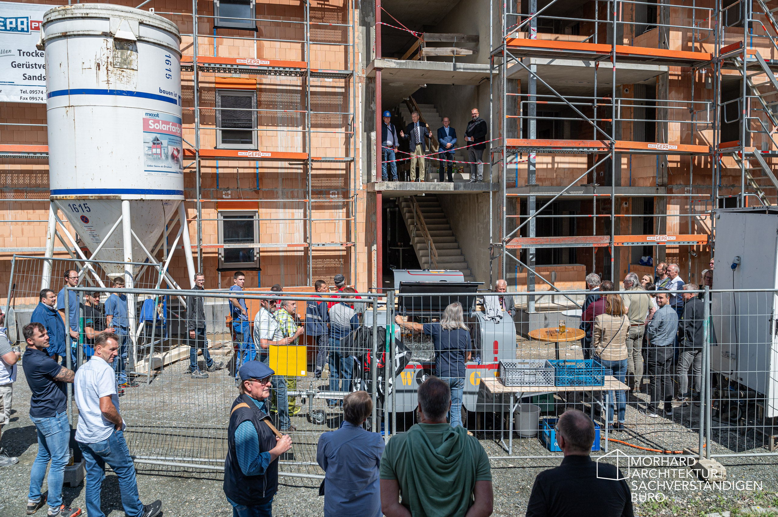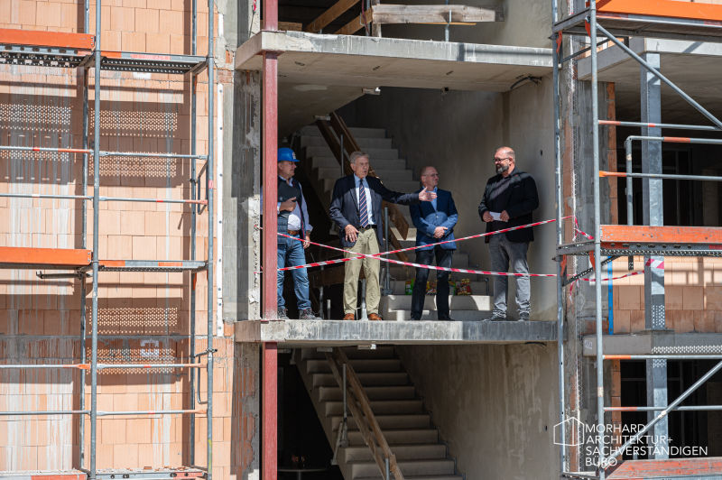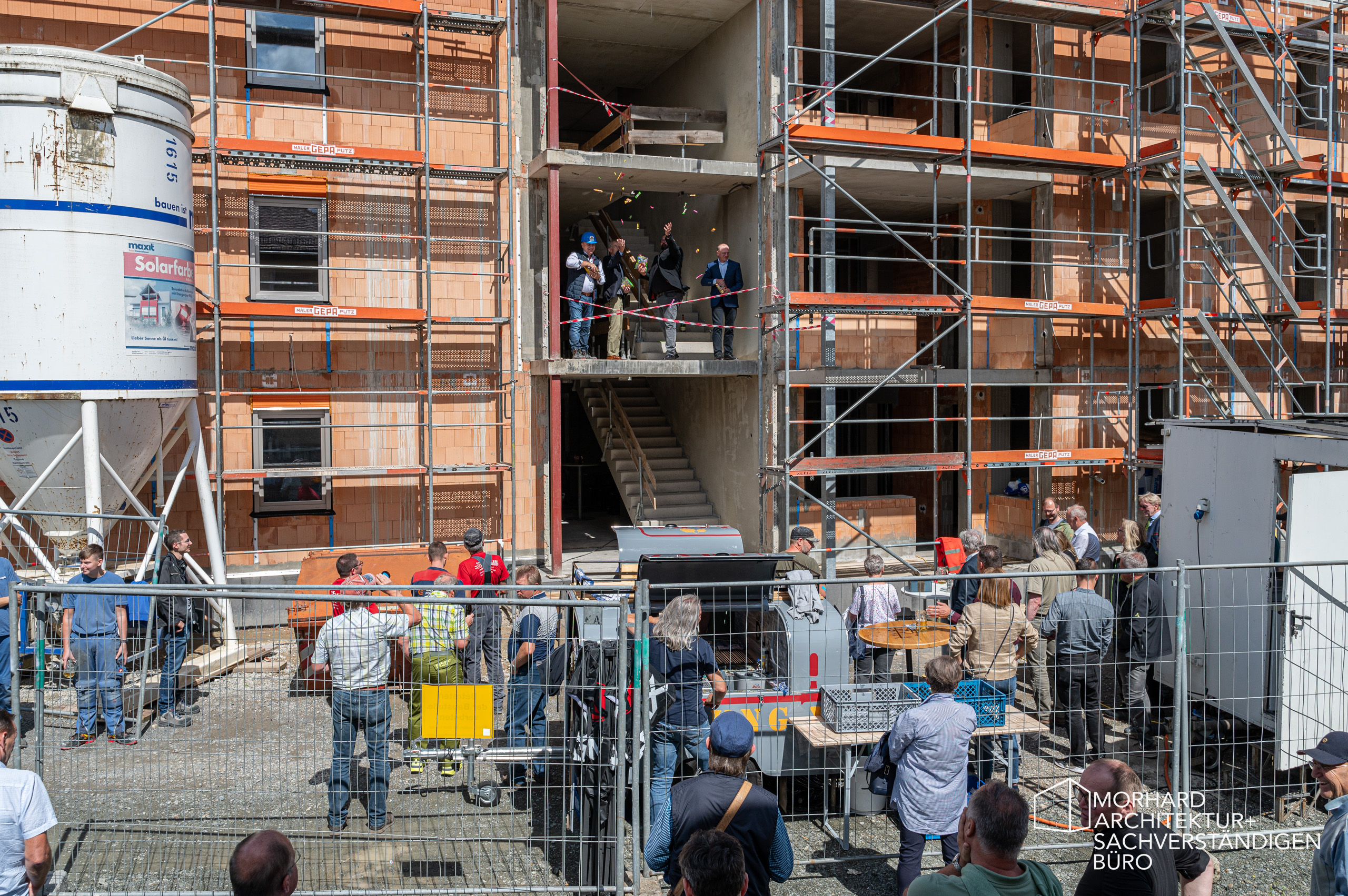 Nach zwei Jahren Rohbau- und ersten Ausbauzeiten konnte endlich das Richtfest gefeiert werden. Der Vorsitzende der Stiftungsbeirats der Friedrich Baur GmbH Herr Freiherr von Waldenfels, der Geschäftsführer der Friedrich Bauer GmbH, Herr Dr. Otmar Fugmann und Architekt Johannes Morhard freuten sich über den Richtspruch des Geschäftsführers der Firma Göhl Bauunternehmen BurgKunststadt, Herrn X Fugmann, der allen Beteiligten Glück und einen unfallfreien Verlauf wünschte.